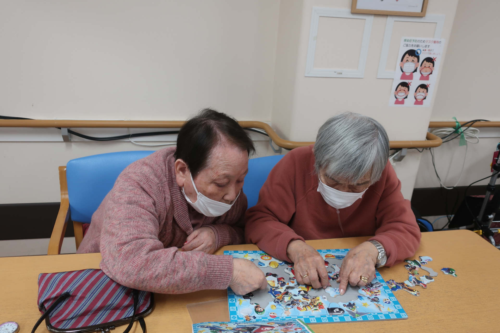 お二人仲良く、お話しながらパズルを楽しまれていらっしゃいました。