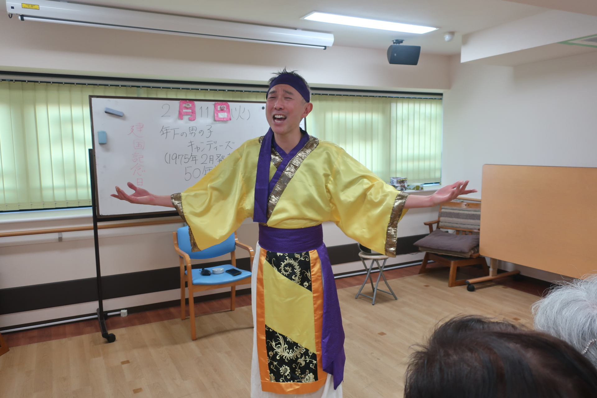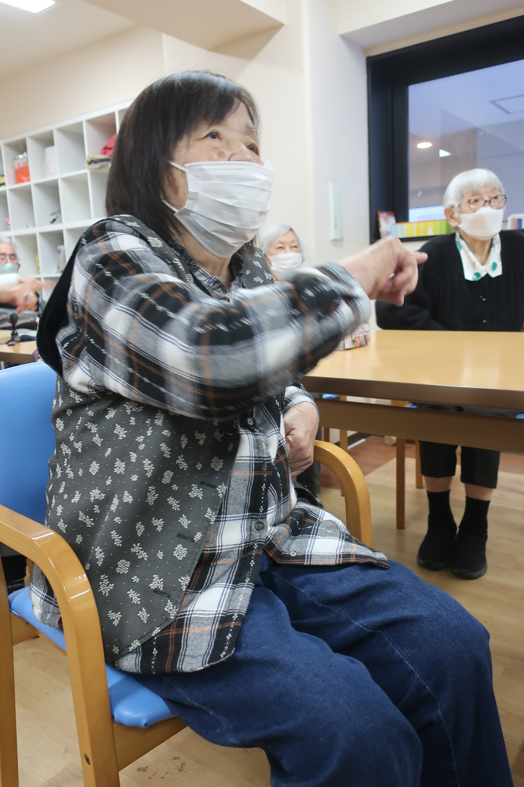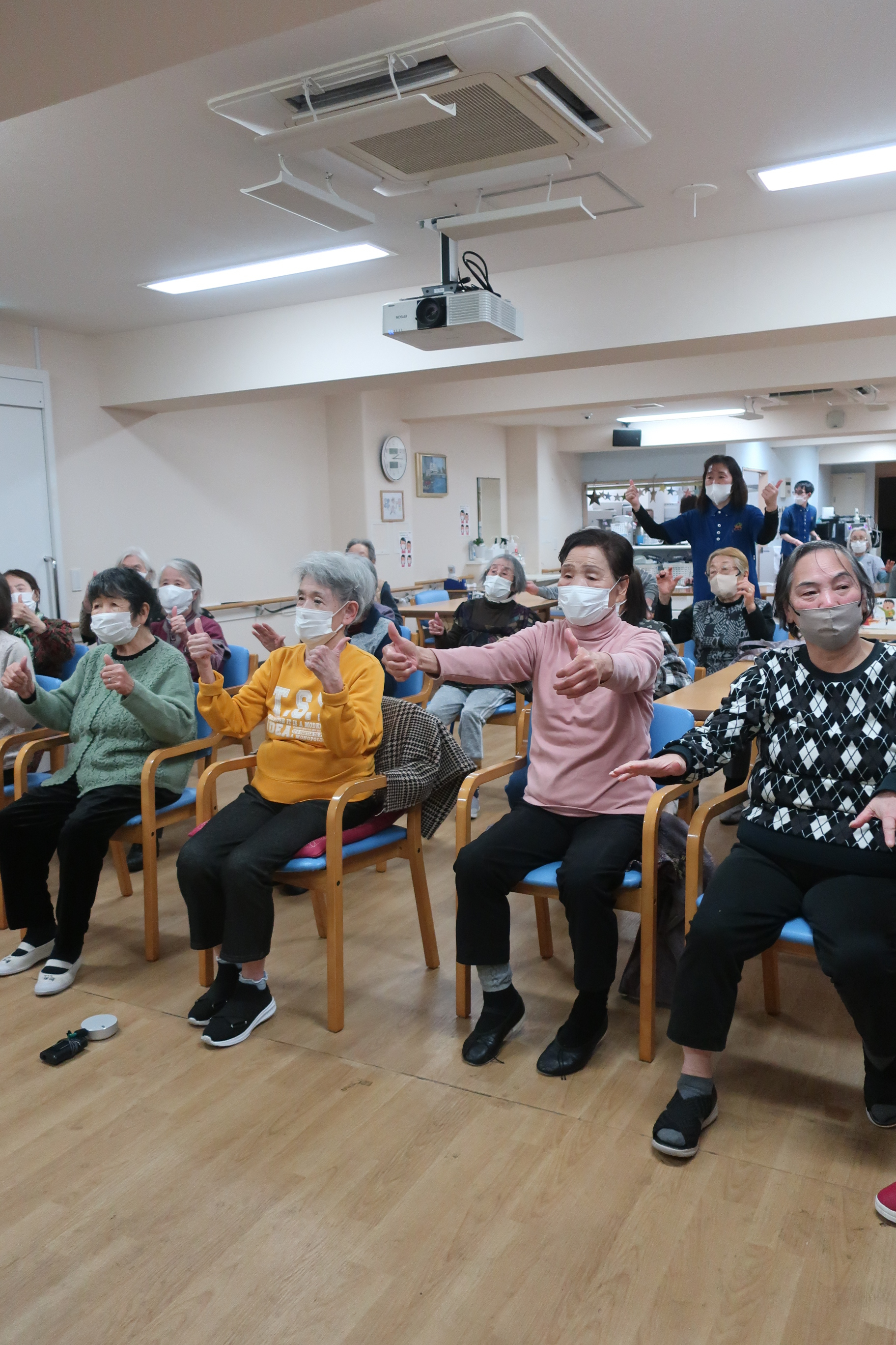 今月は、キャンディーズの「年下の男の子」の曲に合わせて皆さん熱心に体を動かしています!
