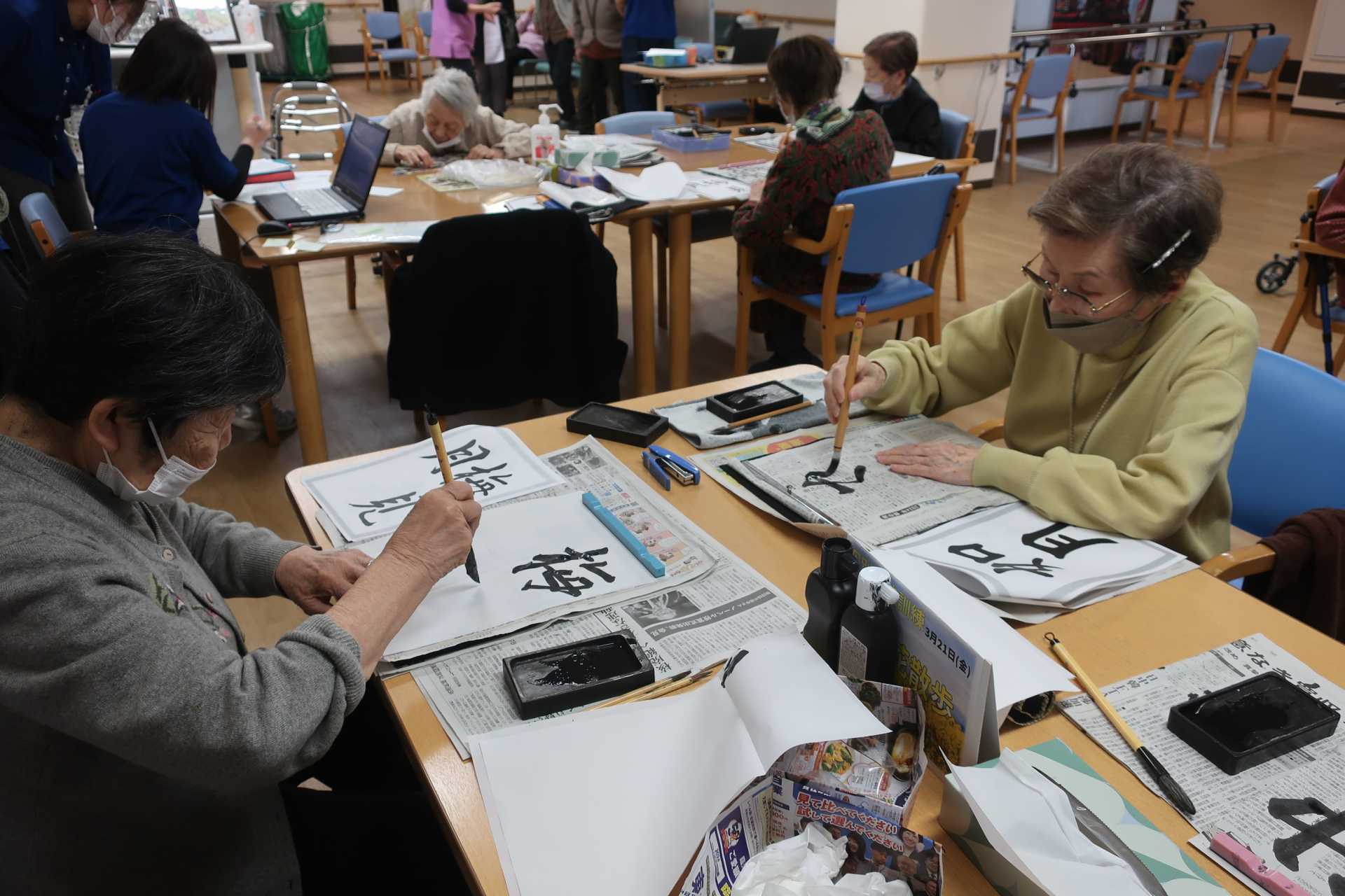 皆さん真剣な表情で一生懸命に筆を握られていました。