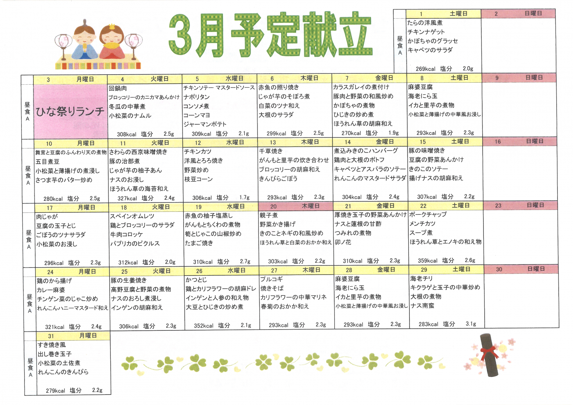 2025.03.07 お知らせ 【センター北】3月昼食メニュー予定表 Tweet シェアする 3月の昼食予定表です。 皆さまには配布済ではありますが、HPにて告知をさせて頂きます。 4月には旨いもの取り寄せ企画を検討中です!乞うご期待! センター北 周藤 前の記事 2025.03.08 お知らせ 【センター北デイ】個別レク紹介 ー三月の手工芸ー 次の記事 2025.03.07 お知らせ 【センター北】3月プログラム表【ヘアカットは3/14】 一覧へ戻る