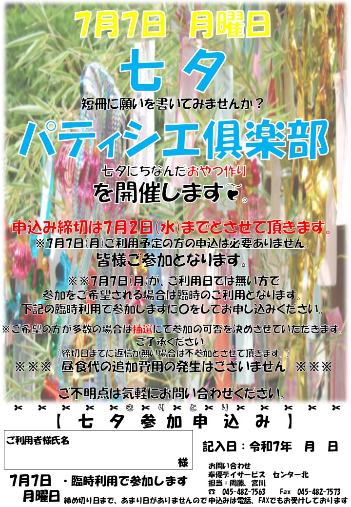 7月7日限定ベント!臨時でのご利用希望の方はお申し込みをお待ちしております!