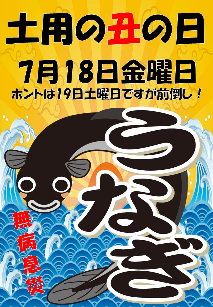 今年の土用の丑の日は7月19日の土曜日ですが、1日前倒し!