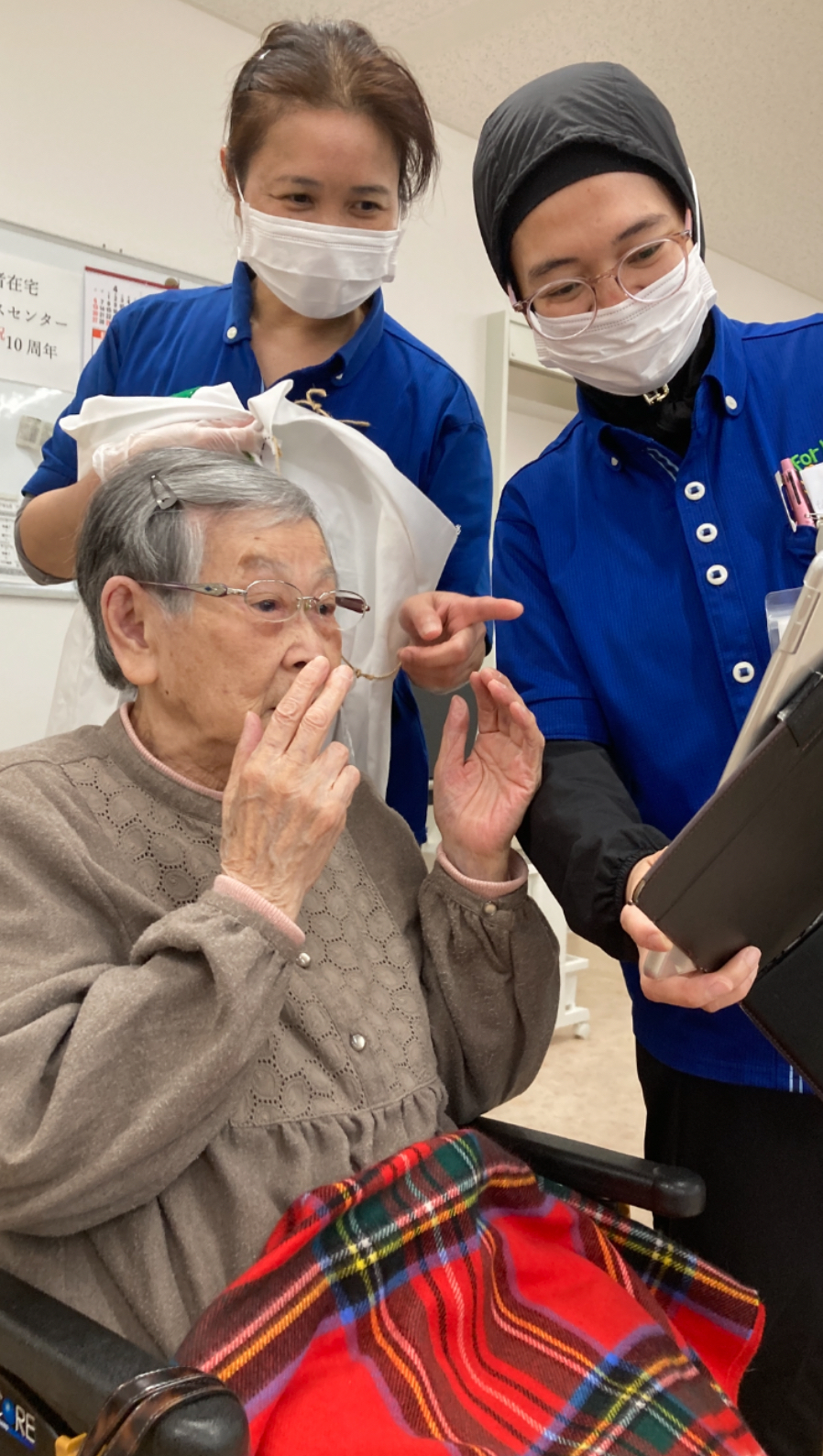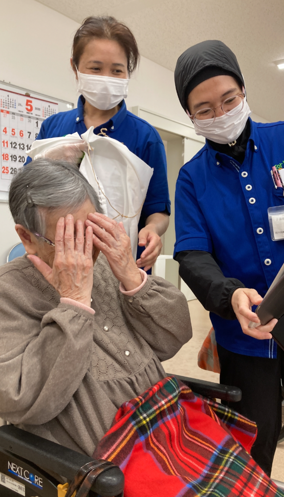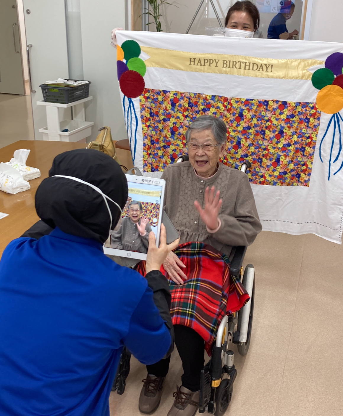 こんにちは。枝川高齢者在宅サービスセンターです。今日はお誕生日カードの記念撮影をしました。自分の写真ってなんだか気恥ずかしいですよね。何枚か撮ってみんなでどれを載せるか決めていきます。恥ずかしかったり驚いたり、こういう時間が楽しくて好きです。