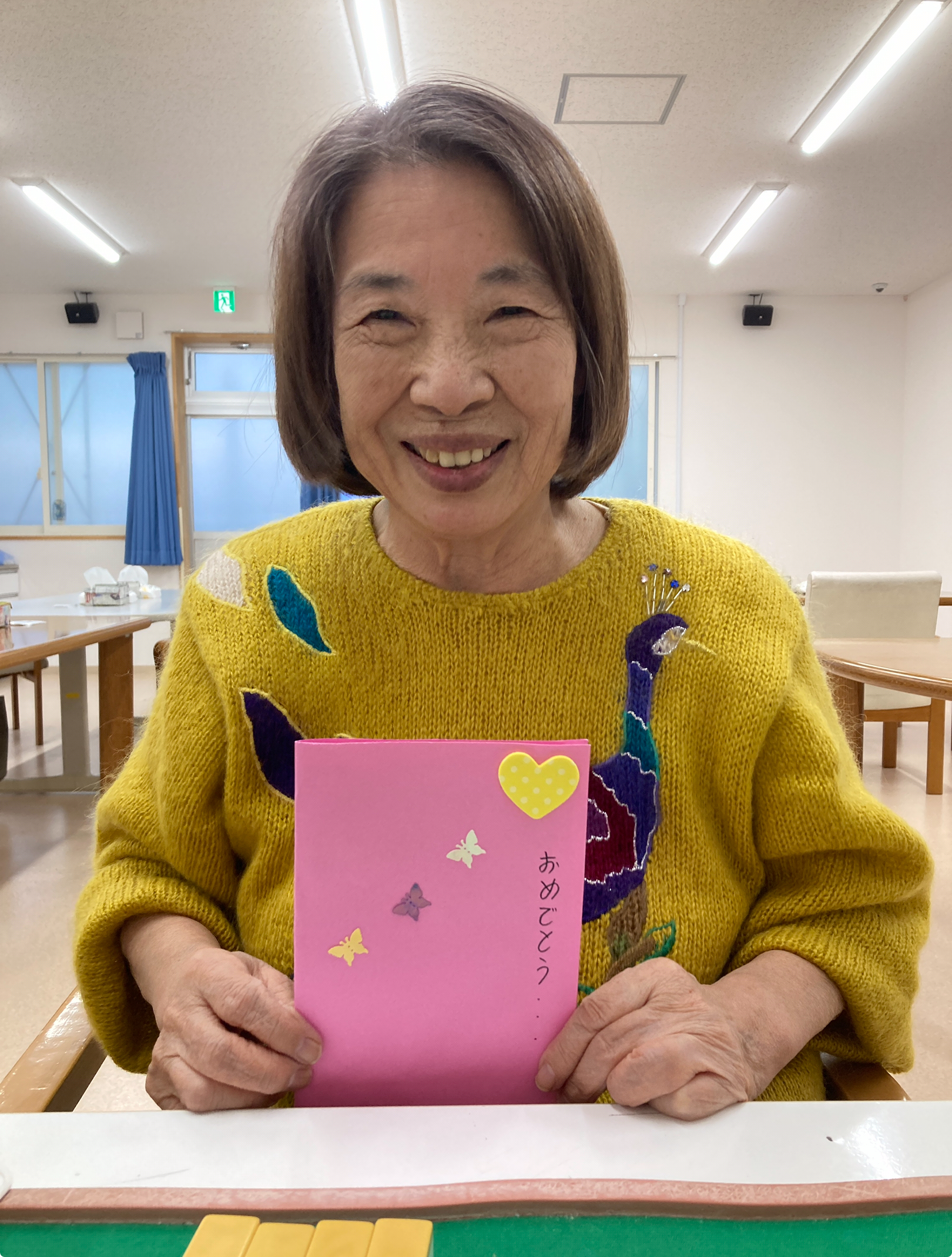 こんにちは。枝川高齢者在宅サービスセンターです。今日は11月がお誕生日のH様をお祝いさせて頂きました。お話し好きで枝川荘麻雀部の一員でもあるH様。来年は新しくなった枝川でまたお祝いさせて下さいね。お誕生日おめでとうございます。