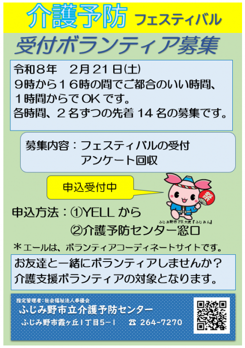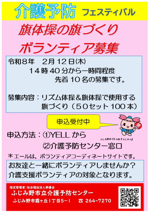 2026.01.28 『おりがみ教室』開催しました! 活動報告 #ふじみ野市立介護予防センター #おりがみ教室 2026.01.28 旗体操の旗づくりボランティア募集中です! お知らせ #ふじみ野市立介護予防センター #ボランティア 2026.01.28 介護予防フェスティバルの受付ボランティアを募集しています!! お知らせ #ふじみ野市立介護予防センター #ボランティア 2026.01.28 テレビゲームダーツを開催しました! 活動報告 #ふじみ野市立介護予防センター #テレビゲームダーツ 2026.01.28 朝のぴんしゃん体操を行いました!! 活動報告 2026.01.27 スローエアロビック♪ 活動報告 #ふじみ野市立介護予防センター #スローエアロビック 2026.01.27 朝のぴんしゃん体操を行いました。 活動報告 2026.01.24 「健康太極拳」を開催いたしました! 活動報告 #ふじみ野市立介護予防センター #健康太極拳 2026.01.24 ヨガ教室(振替分)を開催しました! 活動報告 2026.01.24 「スマホお悩み相談室」を開催いたしました。 活動報告 2026.01.24 朝のぴんしゃん体操を行いました。 活動報告 2026.01.23 『ぬりえ広場』開催しました! 活動報告 #ふじみ野市立介護予防センター #ぬりえ広場 2026.01.23 モルックで遊ぼう!開催しました♪ 活動報告 2026.01.23 「低栄養予防講話」を開催いたしました。 活動報告 2026.01.23 朝ぴんしゃん体操を行ないました‼ 活動報告 1 2 3 … 81