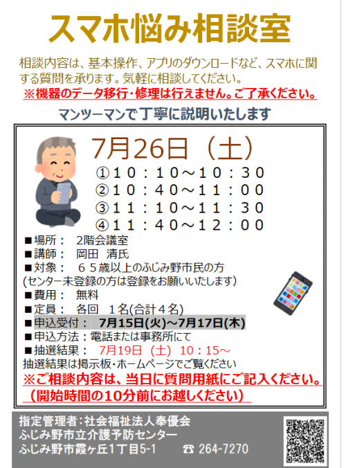 2025.11.29 クリスマス装飾ボランティア 活動報告 #ふじみ野市立介護予防センター #クリスマス装飾ボランティア 2025.11.29 社会体験学習の受け入れ 活動報告 2025.11.29 朝のぴんしゃん体操開催しました。 活動報告 2025.11.28 「筋力向上トレーニング」を開催いたしました! 活動報告 2025.11.28 装飾ボランティアの皆様で飾り付けの製作を行いました☆彡 活動報告 #ふじみ野市立介護予防センター #クリスマス装飾 2025.11.28 『菜園ボランティア』菊芋の収穫とチューリップ球根を植え付けをしました! 活動報告 #ふじみ野市立介護予防センター #菜園ボランティア 2025.11.27 自主グループ『楽食会』が活動しました! 活動報告 #ふじみ野市立介護予防センター #蕎麦 2025.11.27 空手ビクスの申込がスタートします! お知らせ 2025.11.27 「空手ビクス」を開催しました☆ 活動報告 2025.11.27 「高齢者住宅防火の火災予防講座」を開催しました! 活動報告 2025.11.27 朝のぴんしゃん体操を開催しました! 活動報告 2025.11.26 「骨盤底筋トレーニング教室」を開催いたしました! 活動報告 2025.11.26 菜園ボランティア 花壇の整備を行いました! 活動報告 #ふじみ野市立介護予防センター #菜園ボランティア 2025.11.25 朝の「ぴんしゃん体操」を行いました! 活動報告 2025.11.25 パンやお菓子の販売 活動報告 1 2 3 4 5 … 76