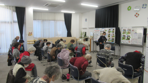 2026.01.19 歯科衛生士によるミニ講座~ブクブクうがいとガラガラうがい~ 活動報告 2026.01.17 「楽しい脳トレ体操」を行いました。 活動報告 2026.01.17 「美容講座」を開催いたしました。 活動報告 2026.01.16 栄養つなぐプロジェクト 管理栄養士と理学療法士によるコラボレーション講座を実施いたしました。 活動報告 2026.01.16 朝の「ぴんしゃん体操」を行いました! 活動報告 2026.01.15 「ヨガ教室」 コース制スタートです。 活動報告 2026.01.15 朝のぴんしゃん体操を行いました。 活動報告 2026.01.15 看護師講話開催しました! 活動報告 2026.01.14 警察による注意喚起講話を開催しました! 活動報告 2026.01.14 朝のぴんしゃん体操を行いました 活動報告 2026.01.14 『モルックで遊ぼう!』 抽選結果発表 お知らせ 2026.01.13 1月「スローエアロビック」の抽選結果発表! お知らせ #ふじみ野市立介護予防センター #スローエアロビック 2026.01.13 朝のぴんしゃん体操開催しました。 活動報告 2026.01.10 小寒におくる落語会を開催しました! 活動報告 #ふじみ野市立介護予防センター #小寒におくる落語会 2026.01.10 「健康太極拳」を開催いたしました! 活動報告 #ふじみ野市立介護予防センター #健康太極拳 1 2 3 4 5 … 81