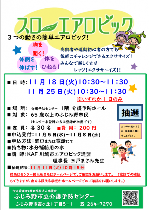 2025.11.14 『ぬりえ広場』開催しました! 活動報告 2025.11.14 菜園ボランティア 二十日大根の収穫と小松菜の種まきをしました! 活動報告 #ふじみ野市立介護予防センター #菜園ボランティア 2025.11.14 低栄養予防講話中止のお知らせ お知らせ 2025.11.13 男性もモルックで遊ぼう! お知らせ 2025.11.13 ヨガ教室(コース制) 活動報告 2025.11.13 11月の「歌声広場」開催しました! 活動報告 #ふじみ野市立介護予防センター #歌声広場 2025.11.12 朝の「ぴんしゃん体操」を行いました。 活動報告 2025.11.12 医師による介護予防のためのミニ講座「骨粗しょう症について」を開催しました 活動報告 2025.11.12 『菜園ボランティア』活動しました! 活動報告 #ふじみ野市立介護予防センター #菜園ボランティア 2025.11.11 テレビゲームダーツを開催しました! 活動報告 #ふじみ野市立介護予防センター #テレビゲームダーツ 2025.11.11 ぴんしゃん体操開催しました! 活動報告 2025.11.11 『ナンプレ教室』開催しました! 活動報告 #ふじみ野市立介護予防センター #ナンプレ教室 2025.11.11 11月「スローエアロビック」の抽選結果発表! お知らせ #ふじみ野市立介護予防センター #スローエアロビック 2025.11.10 スポーツ吹き矢を開催しました! 活動報告 #ふじみ野市立介護予防センター #スポーツ吹矢 2025.11.08 「健康太極拳」を開催いたしました! 活動報告 #ふじみ野市立介護予防センター #健康太極拳 1 … 3 4 5 6 7 … 76