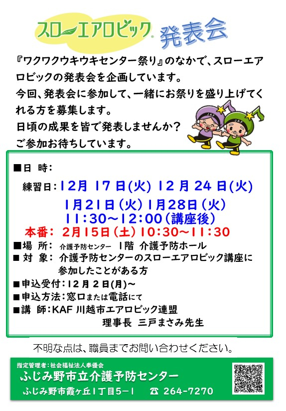 スローエアロビック発表会参加者募集のお知らせ ★ワクワクウキウキセンター祭り★