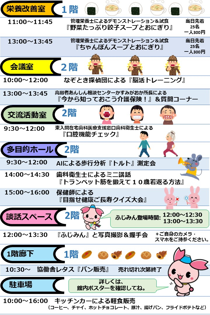 今回のワクワクウキウキセンター祭りでも、介護予防に特化した15の講座とイベントを準備しています。