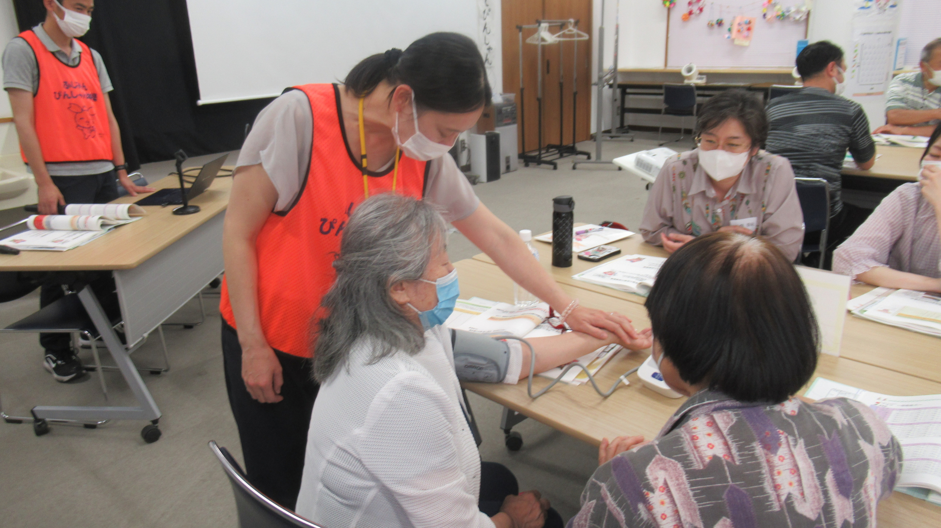 ぴんしゃんサポーターは、ぴんしゃん体操の指導者ではなく、ぴんしゃん体操などの伝達や参加者の見守り、手助け、会場運営のお手伝いなどを行う人です。