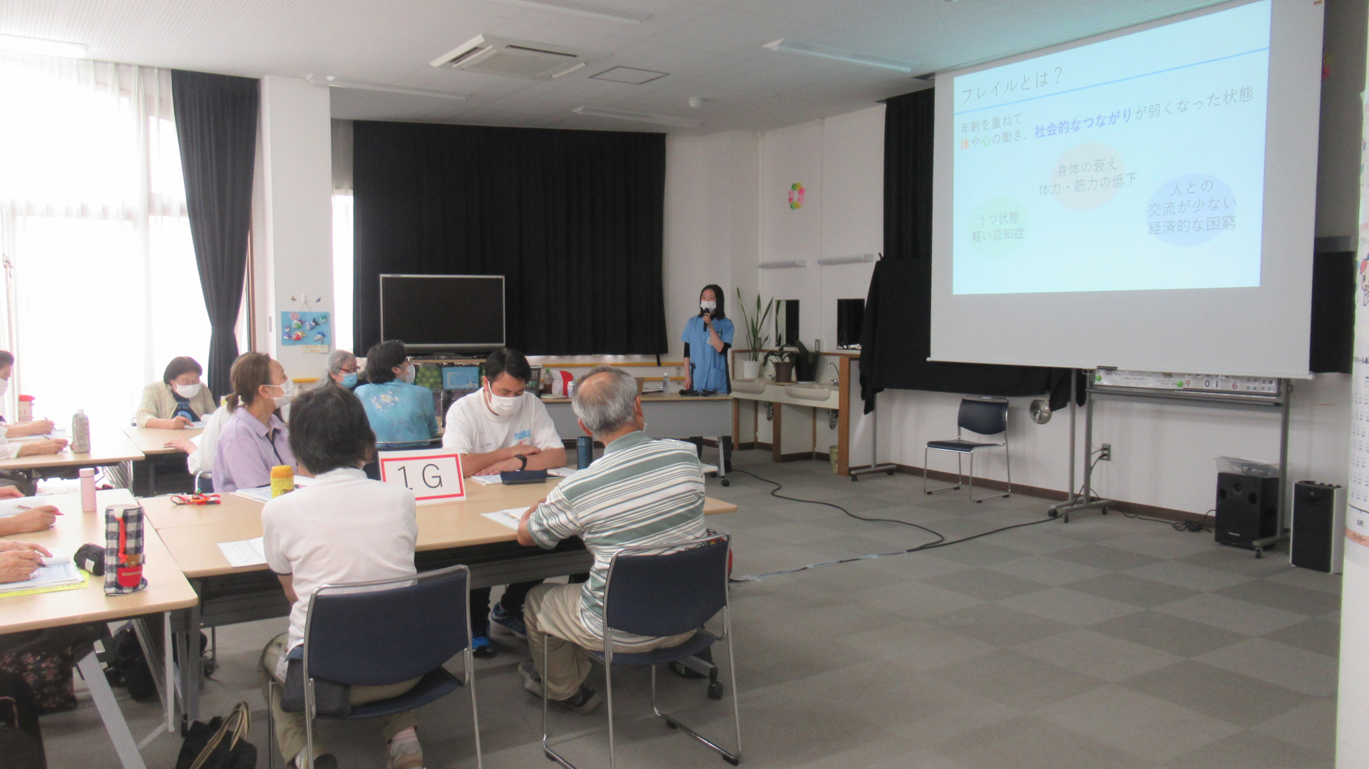その後は、実技 「ふじみんぴんしゃん体操」基本体操を理学療法士 瀧村先生より学びます。講義と実技、充実な養成講座となりました。参加者のみなさん、お疲れさまでした^^