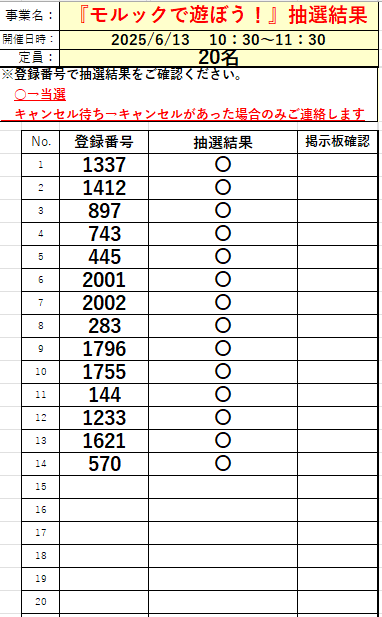 ふじみ野市立介護予防センターで、6月開催『モルックで遊ぼう!』の抽選結果発表を行います。