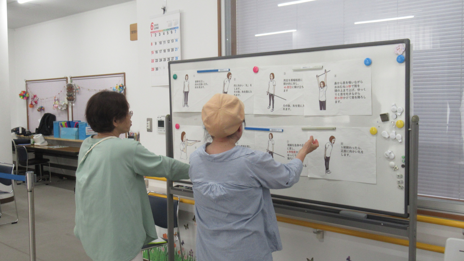 ふじみ野市立介護予防センターでは、今日はスポーツ吹矢(初級)の日でした。初級と中級にコースを分けて講座を行っています。