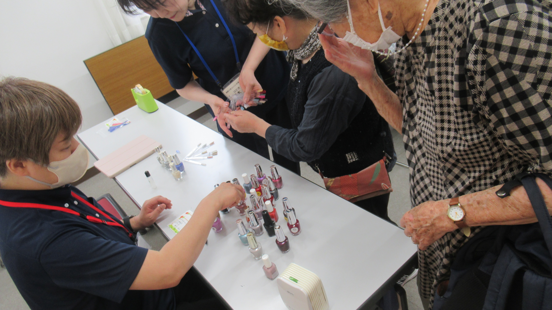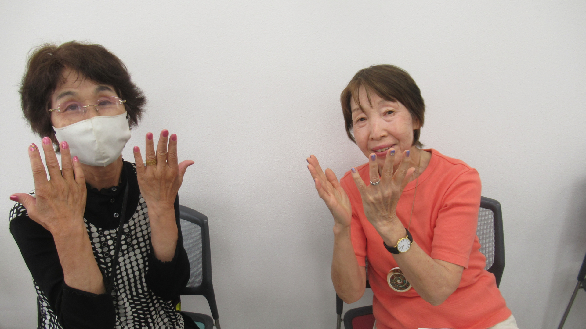 ふじみ野市立介護予防センターでは、出張ネイルボランティアさん(北区・滝野川老人いこいの家)にお越しいただき、マネキュア施術を行っていただきました。