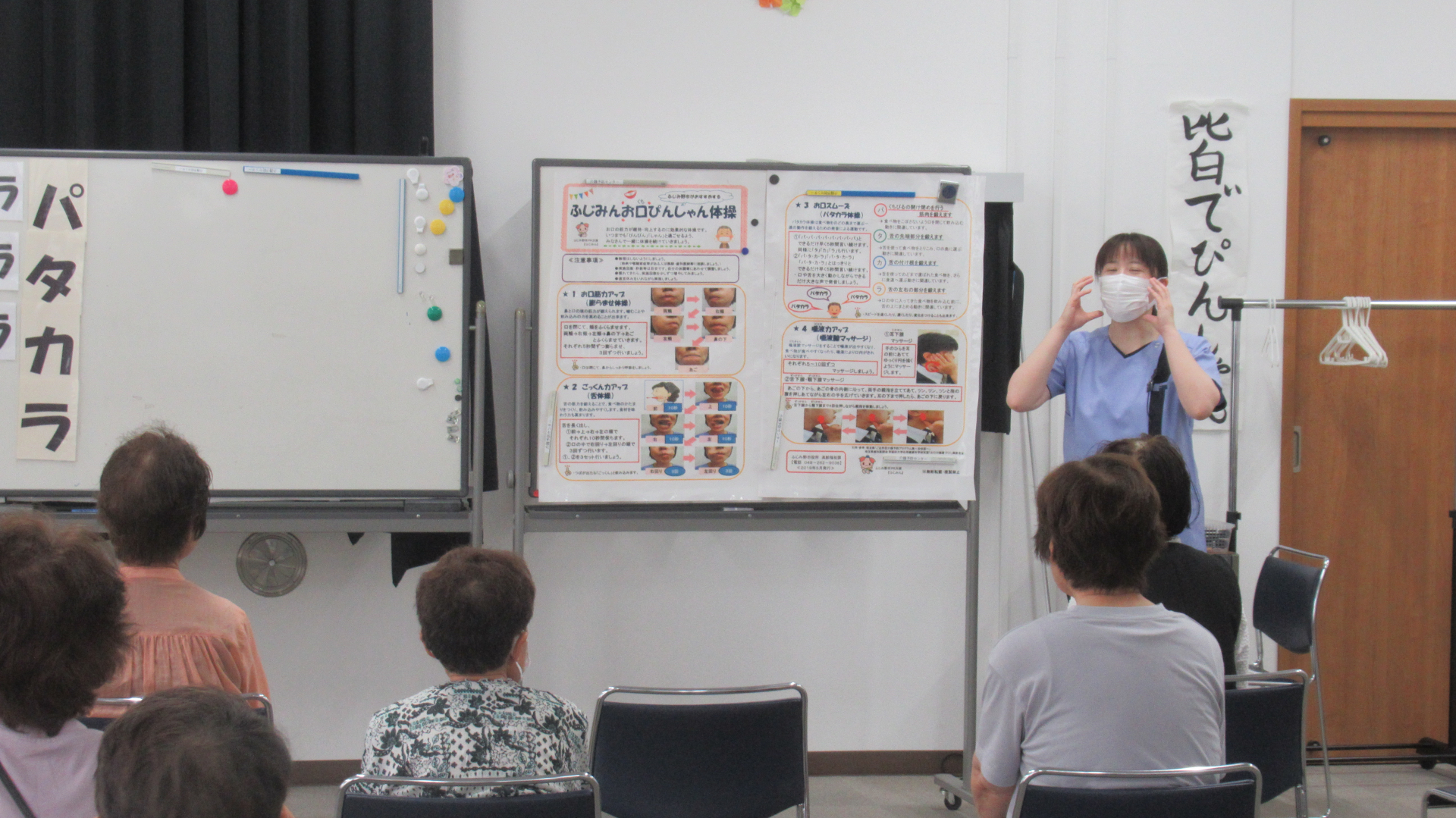 ふじみ野市立介護予防センターでは、歯科衛生士さんによるミニ講座「お口の体操」を開催しました。