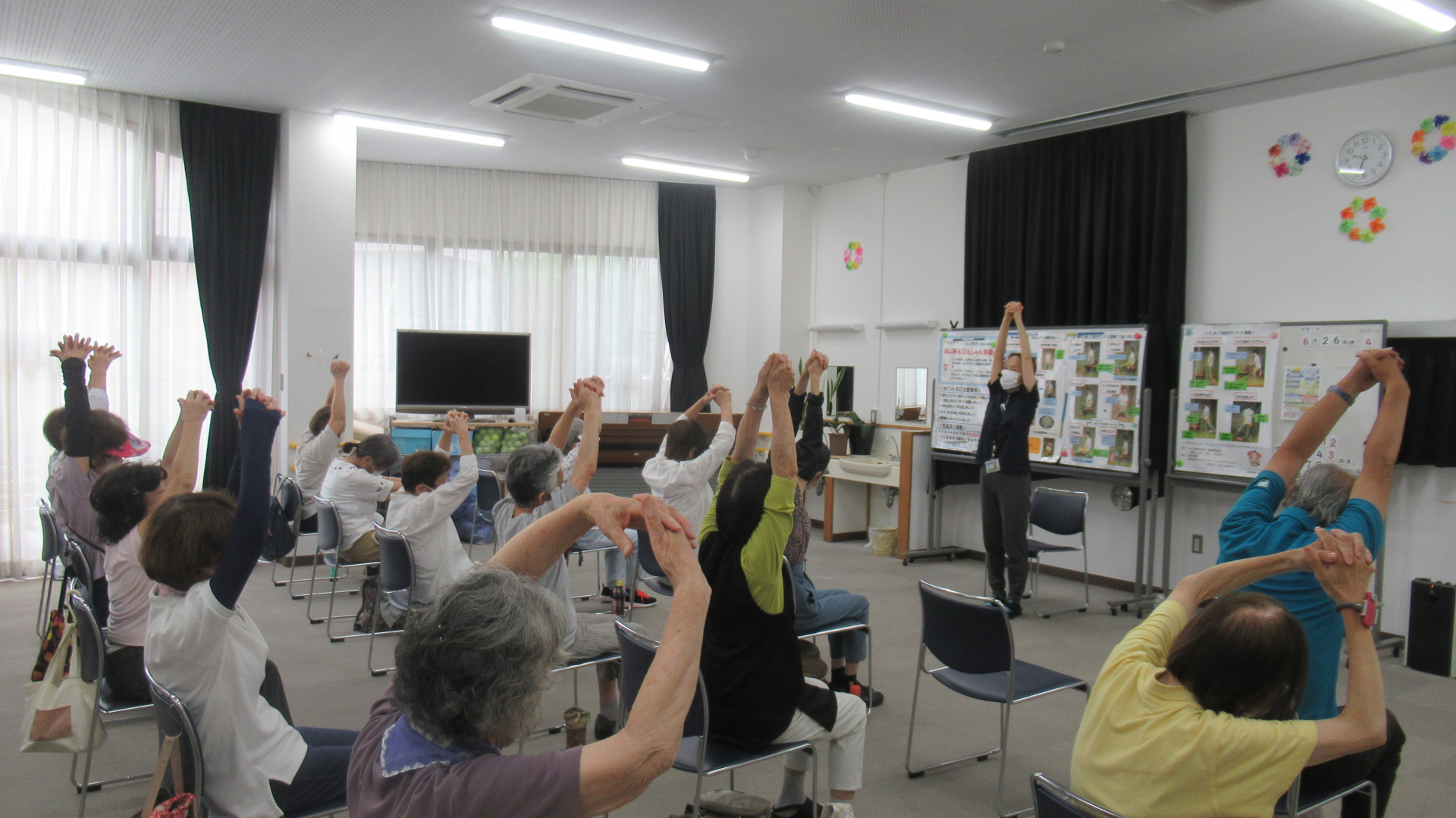 ふじみ野市立介護予防センターでは、朝のぴんしゃん体操を行いました。