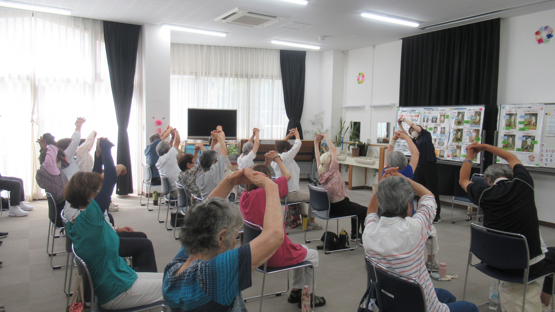 ふじみ野市立介護予防センターでは、朝のぴんしゃん体操を行いました。