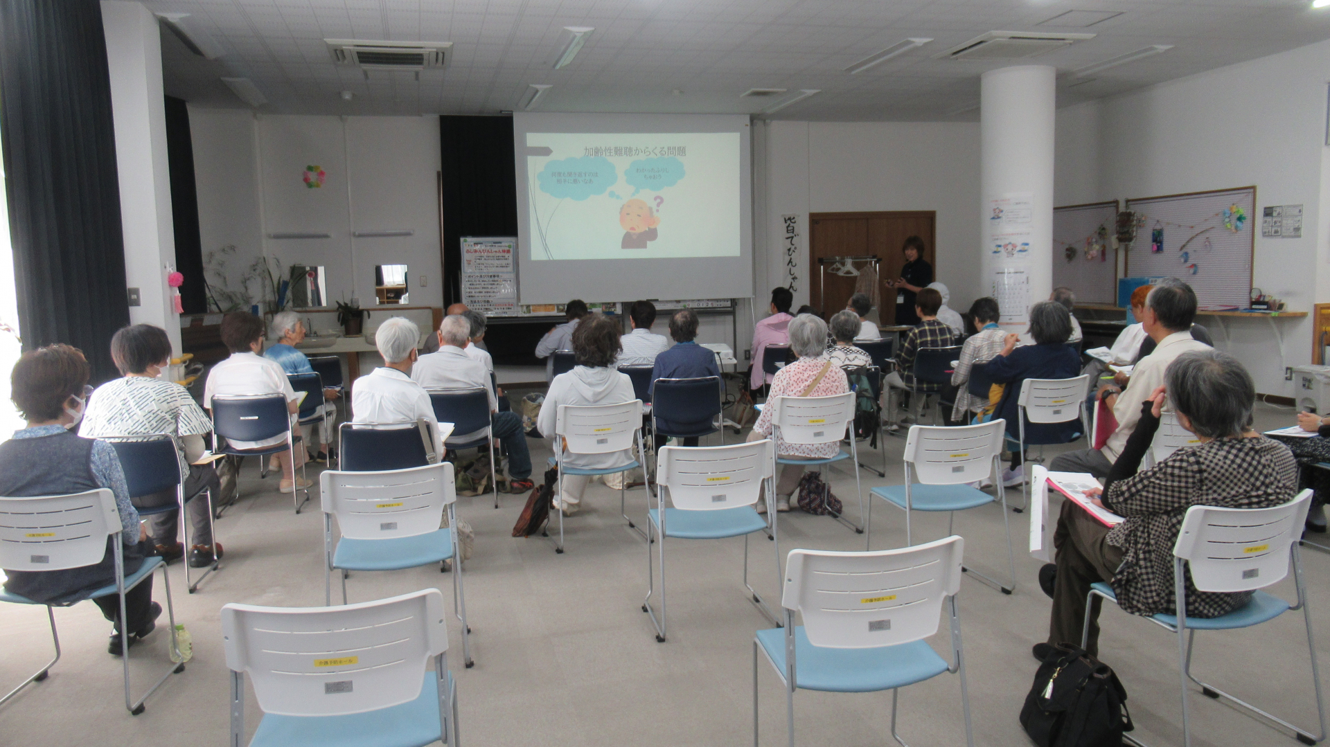 ふじみ野市立介護予防センターでは、高齢者の難聴と会話のポイントの講話を開催しました。