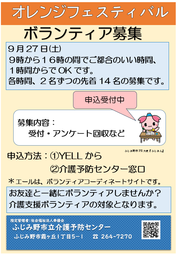 令和7年9月27日(土)オレンジフェスティバルの受付ボランティアを募集しております!!