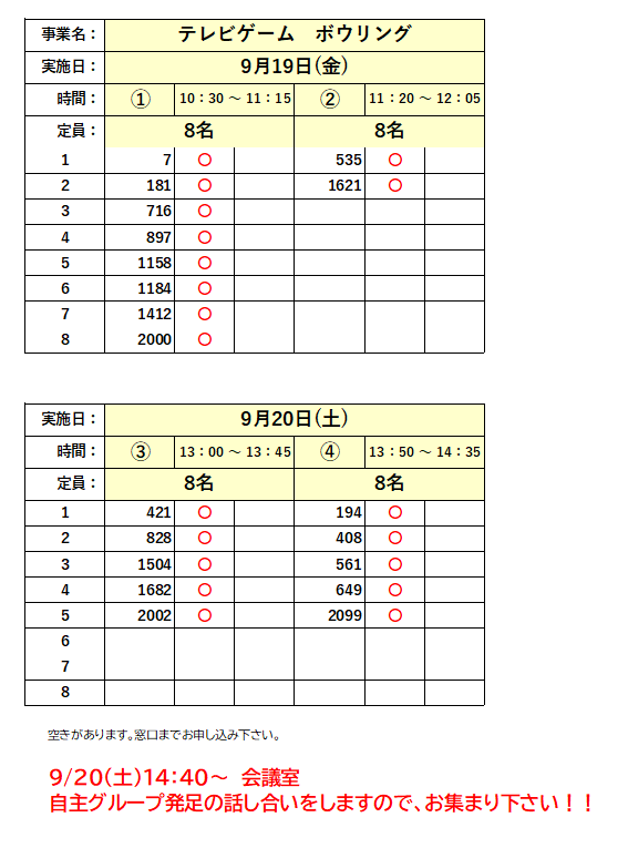 9月「テレビゲームボウリング」の抽選結果発表です。