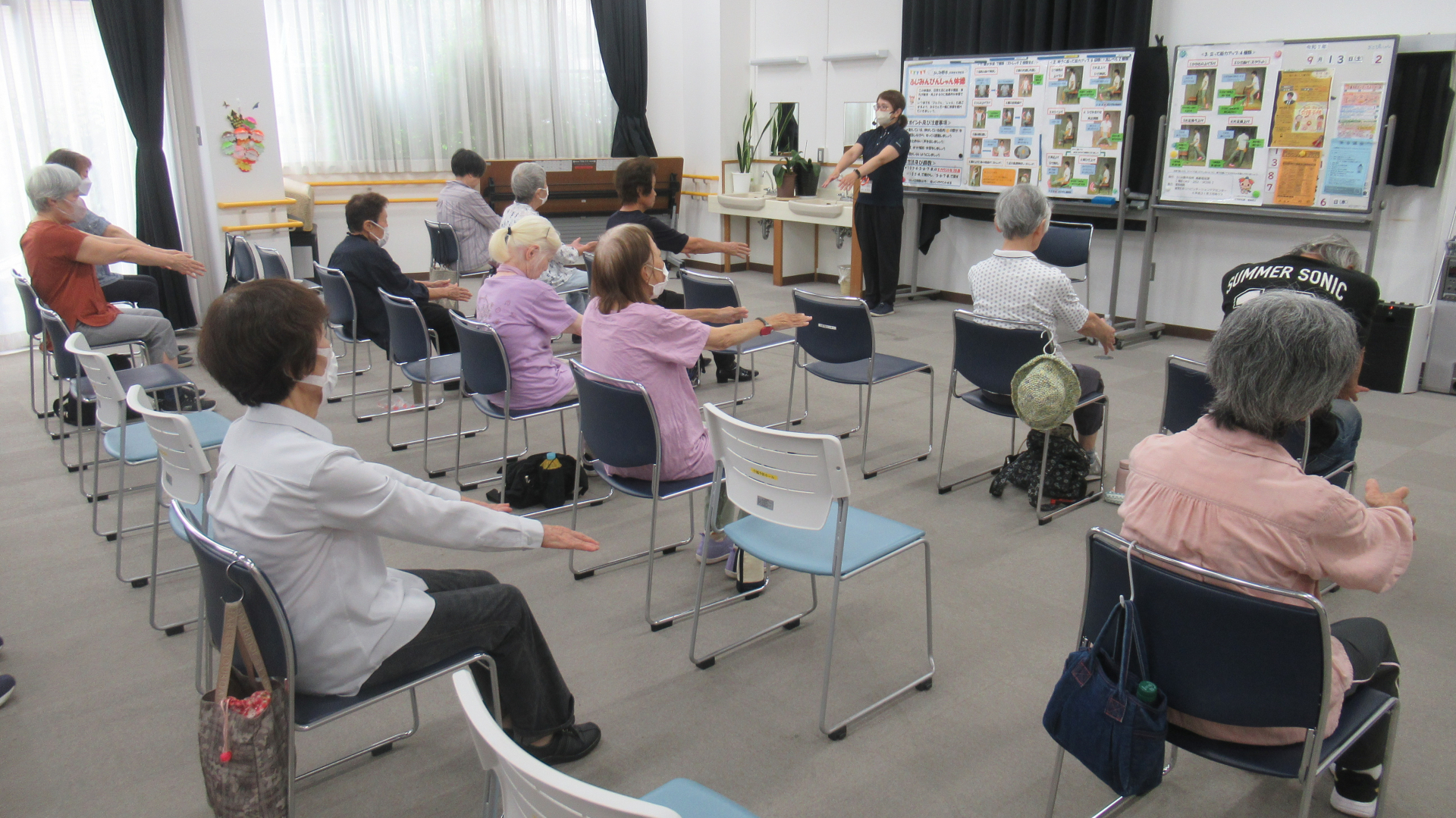 今日は湿度も高く蒸し暑いお天気でしたが、皆さん適宜水分摂取をされ体操を行っていました。