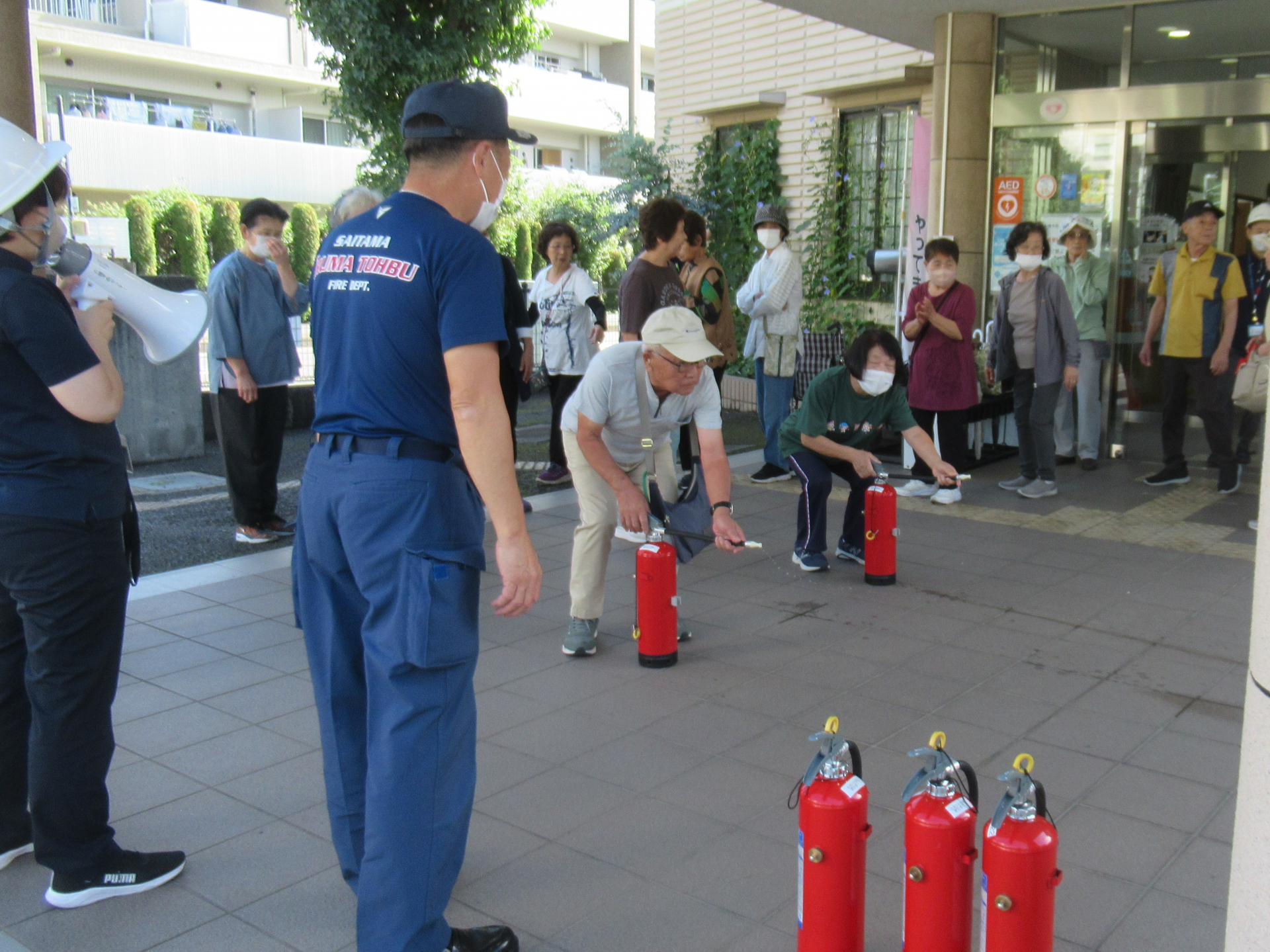ふじみ野市立介護予防センターでは、本日、利用者の皆さまと一緒に「消防訓練」を行いました。