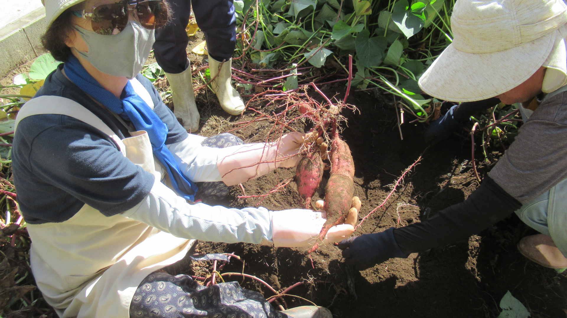 3度目の正直!大きなさつまいもが収穫できました。ここから2週間、暗いところで寝かせて甘くなるのが楽しみですね。