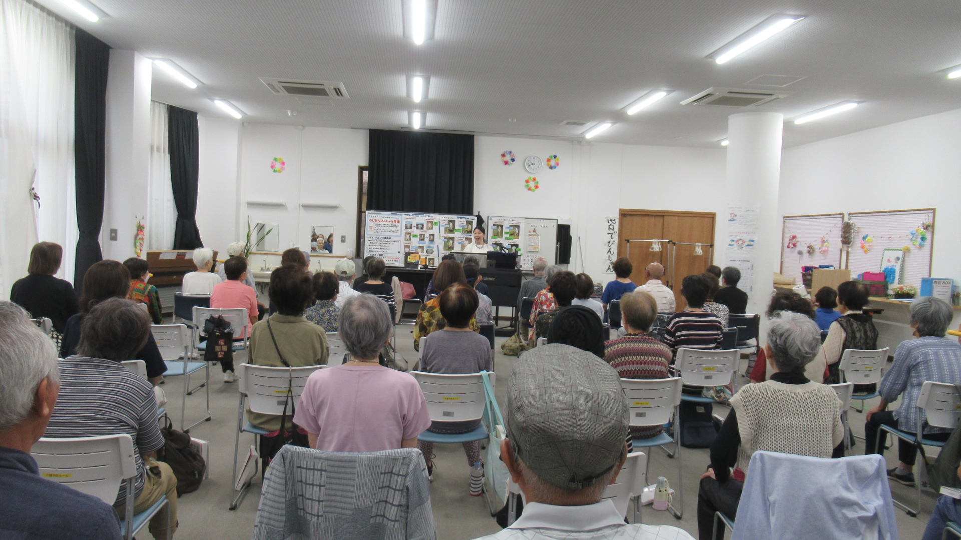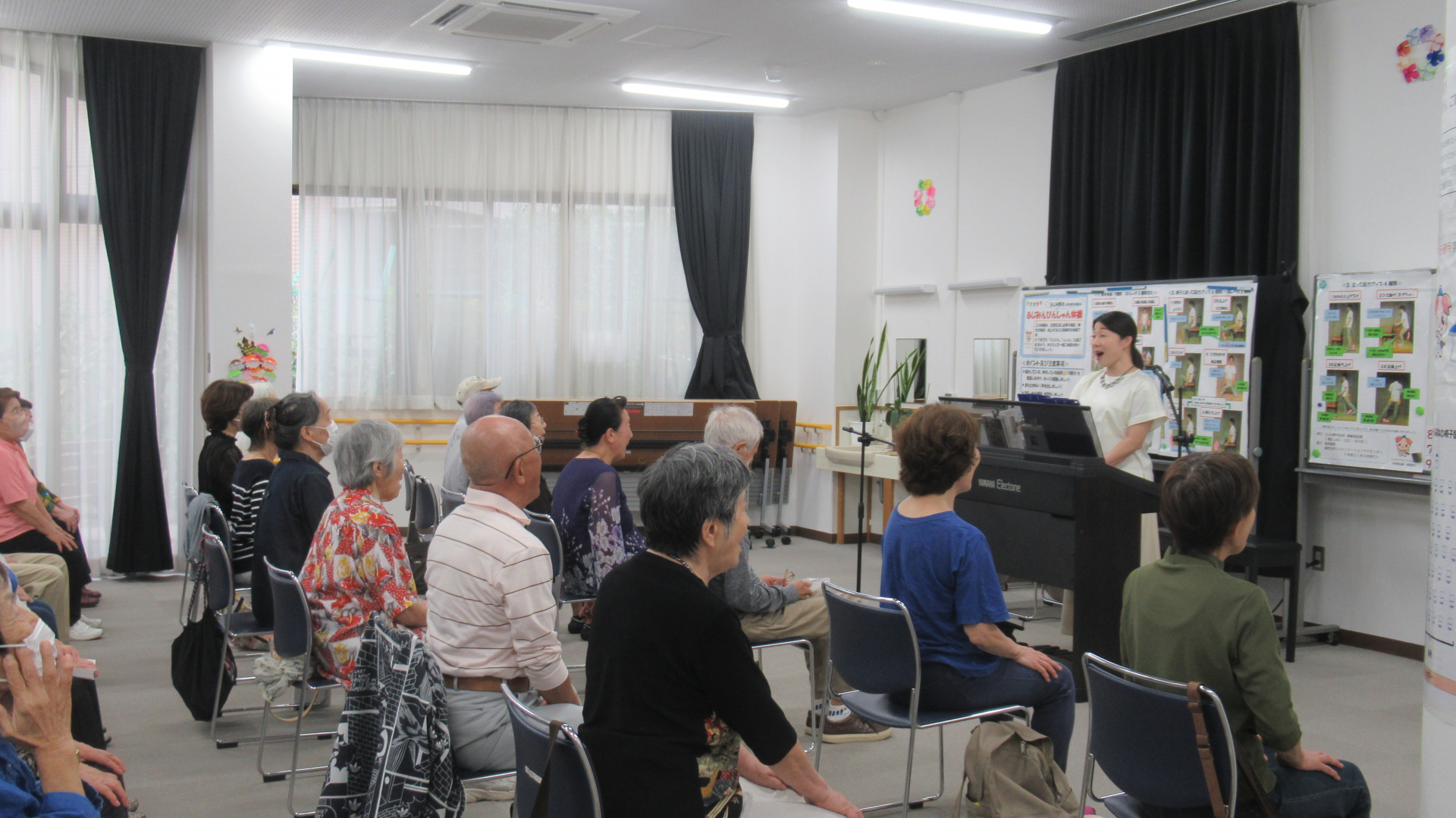 秋らしい歌や、新しい曲にも挑戦しました。皆様、姿勢よく大きな声でとても上手に歌えていました!