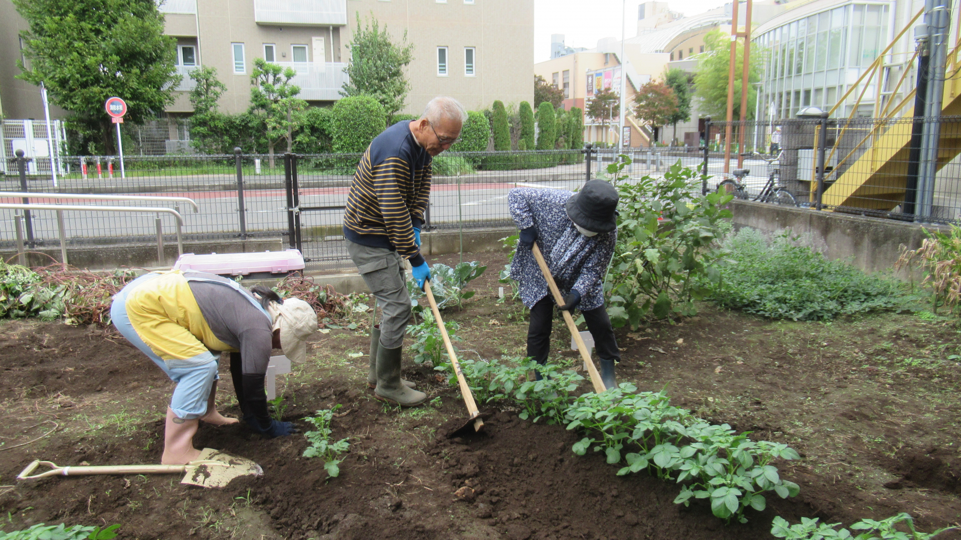 ふじみ野市立介護予防センターでは、じゃがいもの土寄せを行いました!