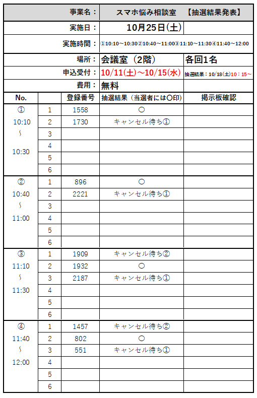 ふじみ野市立介護予防センターでは、スマホ悩み相談室の抽選結果発表をいたします。