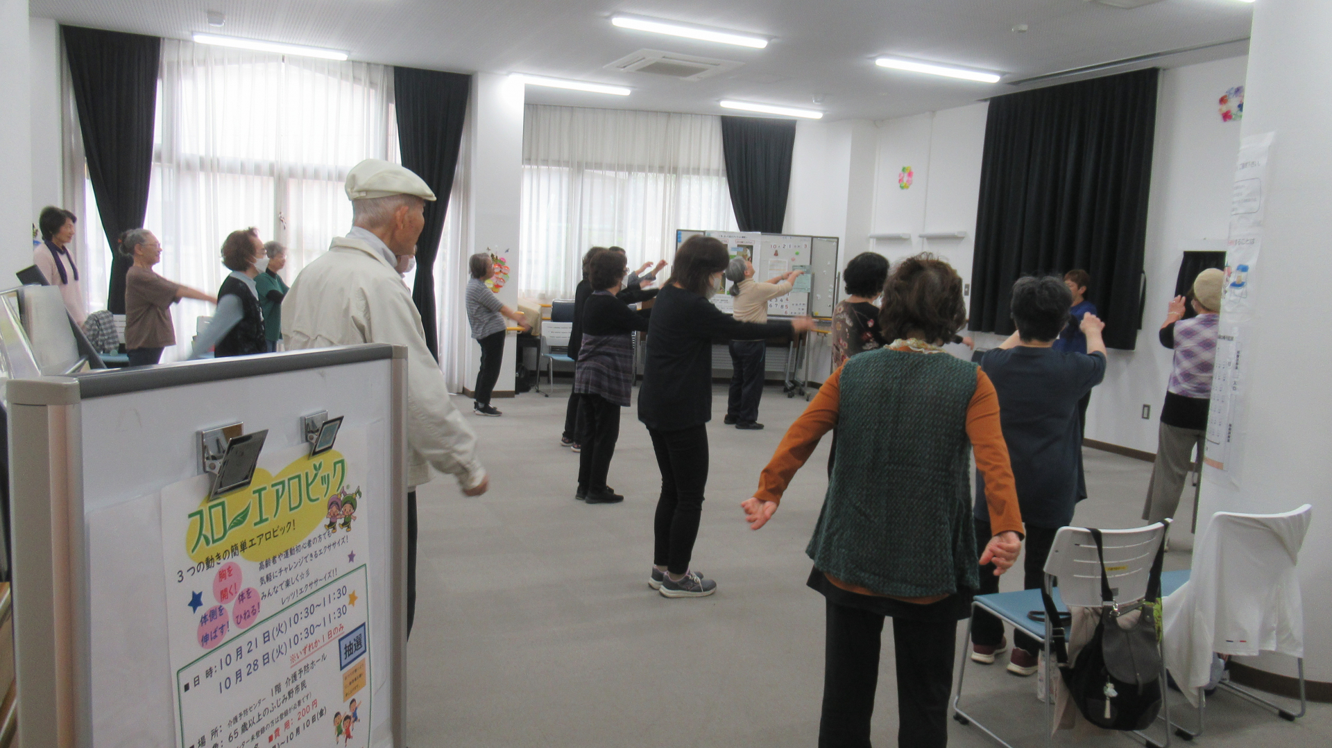 ふじみ野市立介護予防センターでは、10月1回目のスローエアロビック講座が行われました。