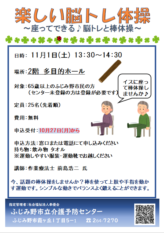 ふじみ野市立介護予防センターからのお知らせです。