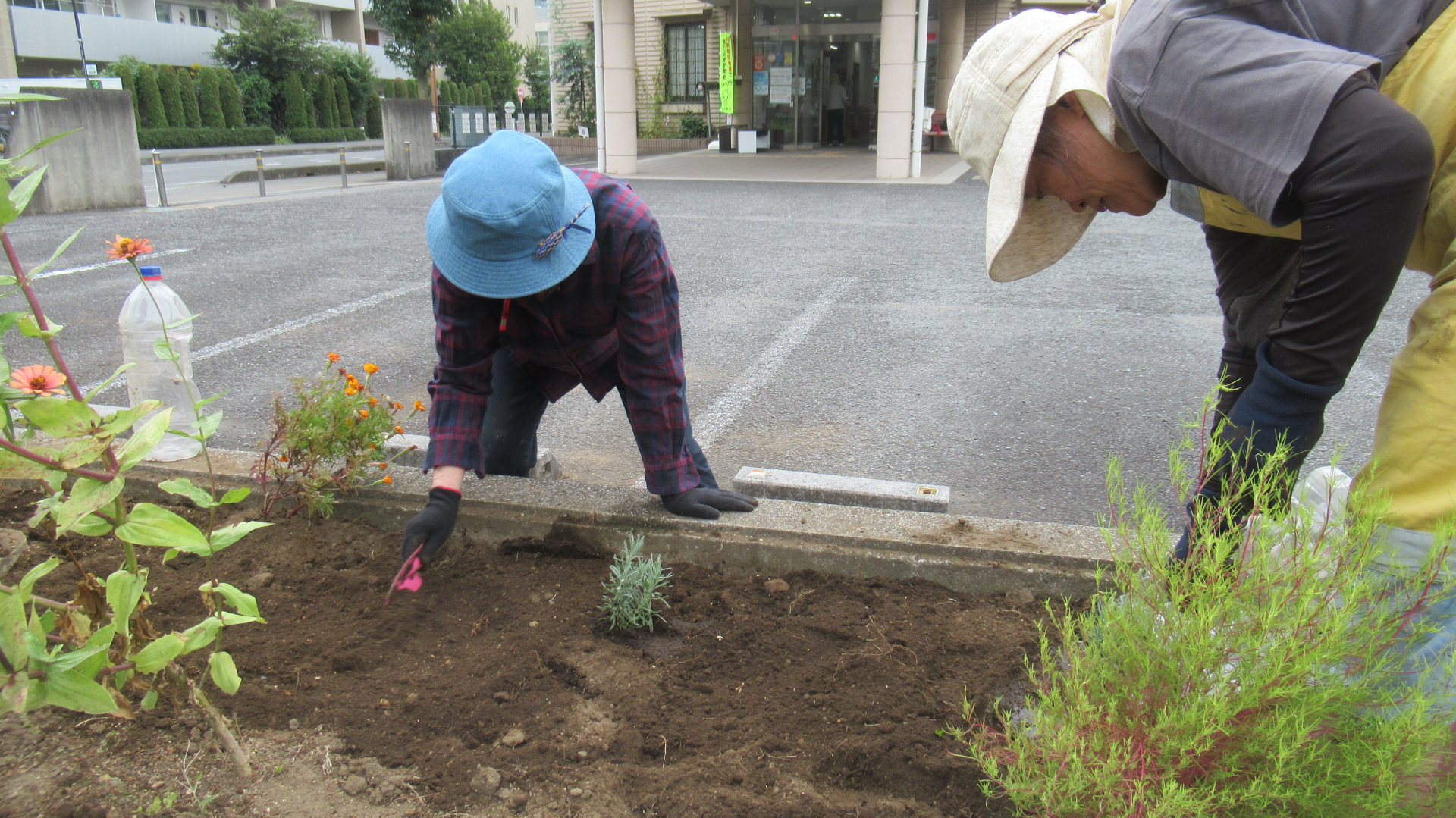 菜園ボランティア ラベンダーの移植と花壇の片付けをしました。