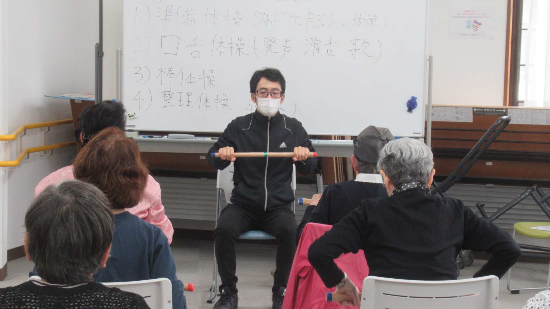 楽しい脳トレ体操では、今話題の棒体操を含め、盛りだくさんのメニューを行います。