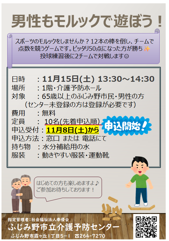 11月15日(土)13:30~ 男性もモルックで遊ぼう! を開催します!