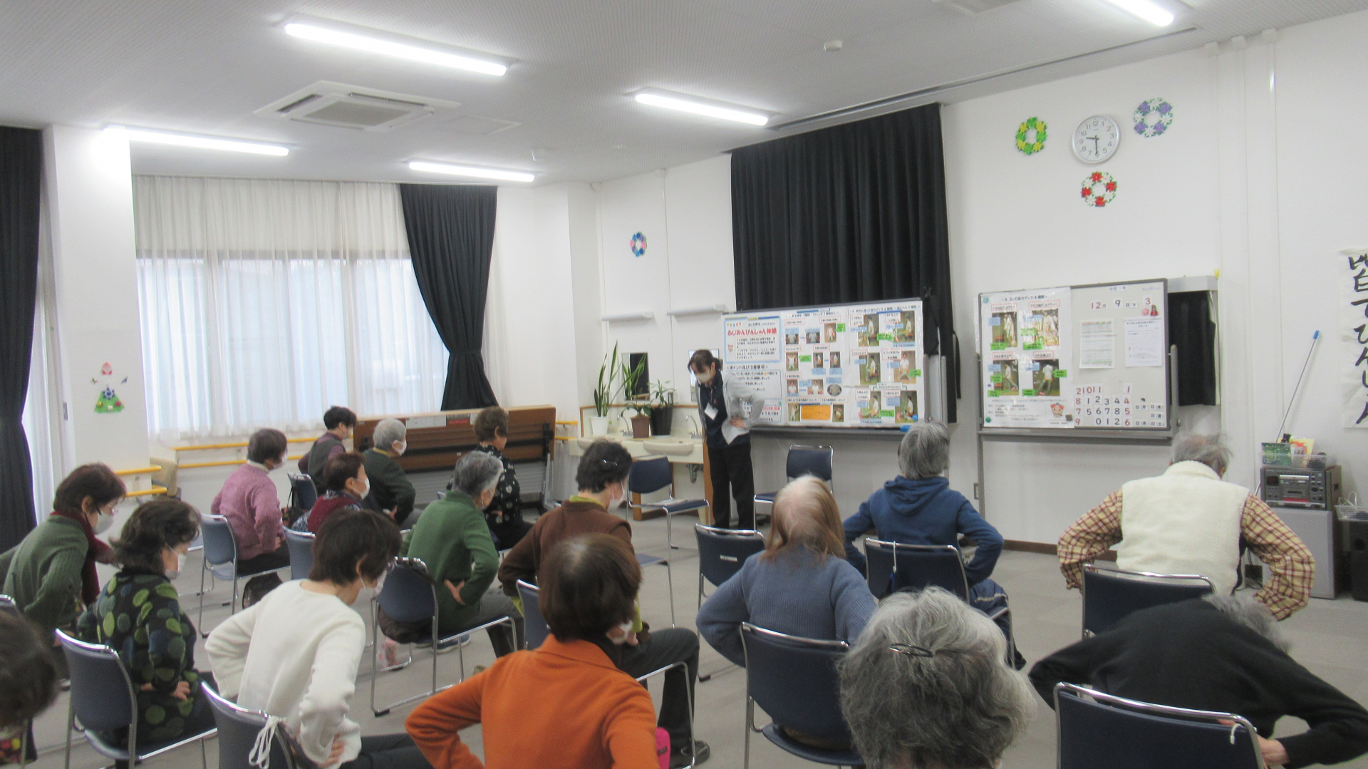 乾燥の季節となっており皆さん適宜に水分摂取し喉を潤し体操に臨まれていました。