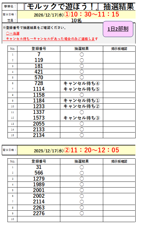 また、当選された方はおめでとうございます!当日、動きやすい服装・運動靴でお越しください。