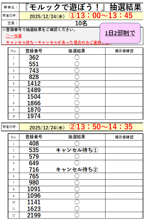 今回もたくさんの方にご応募いただきました。キャンセル待ちとなってしまった方、申し訳ございません。