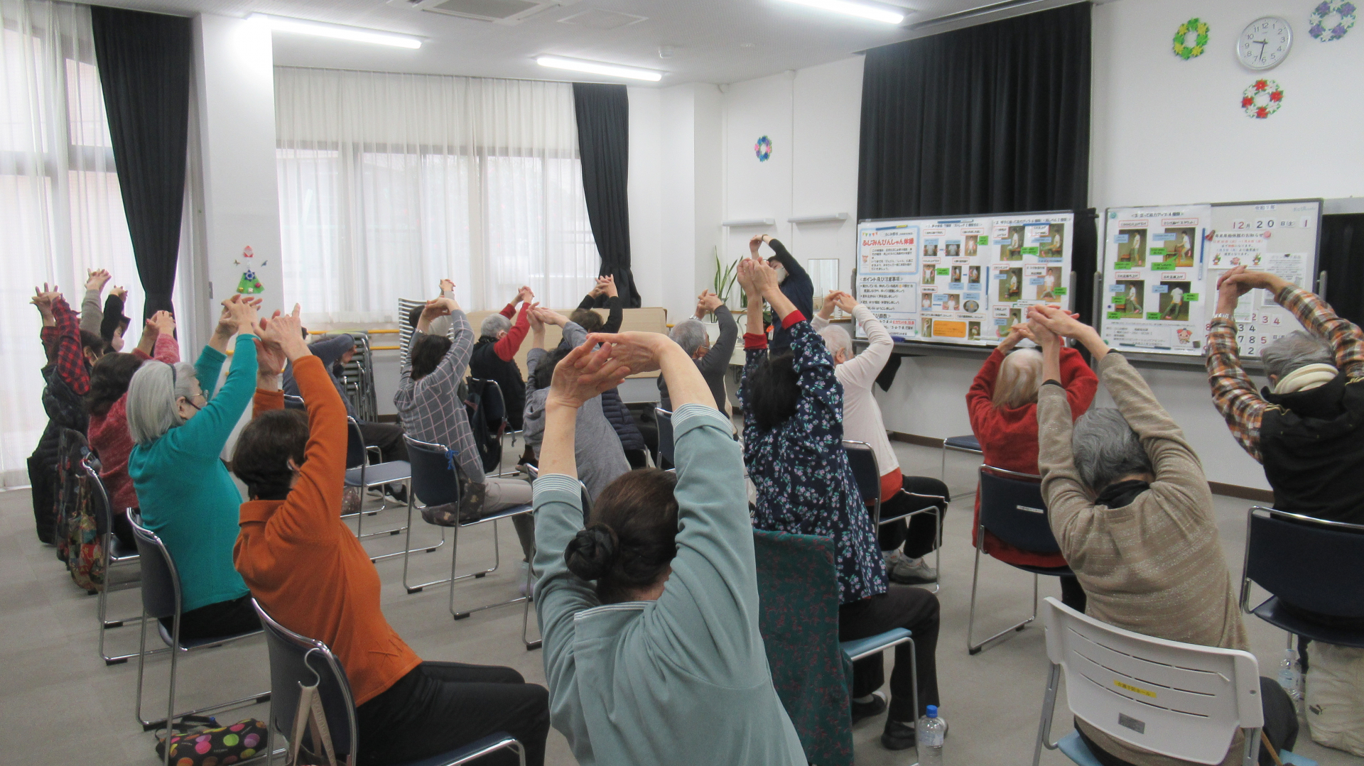 ふじみ野市立介護予防センターでは、朝のぴんしゃん体操を行いました。