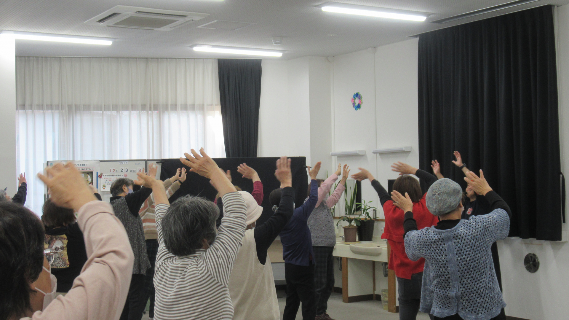 クリスマスにぴったりな曲にリズムに合わせて、楽しい時間ですね。乾燥対策に耳下腺マッサージも行いました!