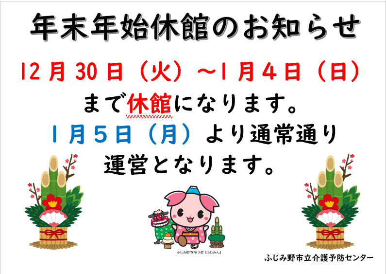 2025.12.27 お知らせ 年末年始休館のお知らせ Tweet シェアする 前の記事 2025.12.27 お知らせ 『スマホ悩み相談室』開催しました! 次の記事 2025.12.27 お知らせ 健康太極拳☆彡 一覧へ戻る