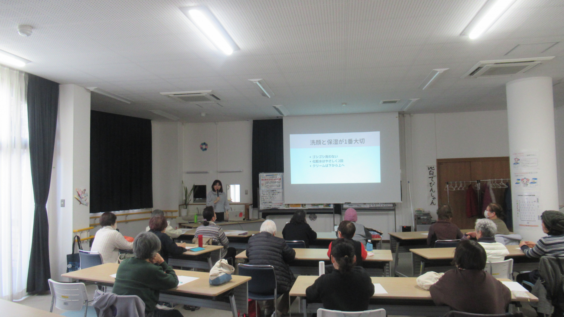 ふじみ野市立介護予防センターでは、本日、美容講座を開催いたしました。テーマは~大人のための美容教室 品よく若見えするスキンケア&メイク講座~です。