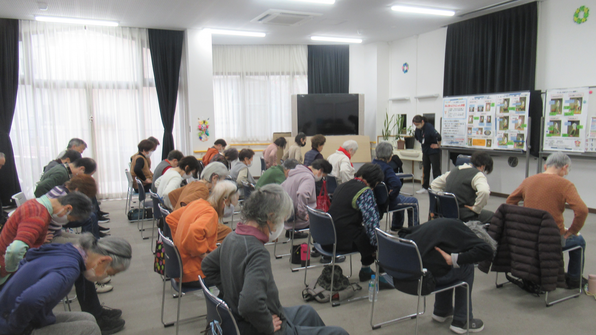 ふじみ野市立介護予防センターでは、朝のぴんしゃん体操を行いました。