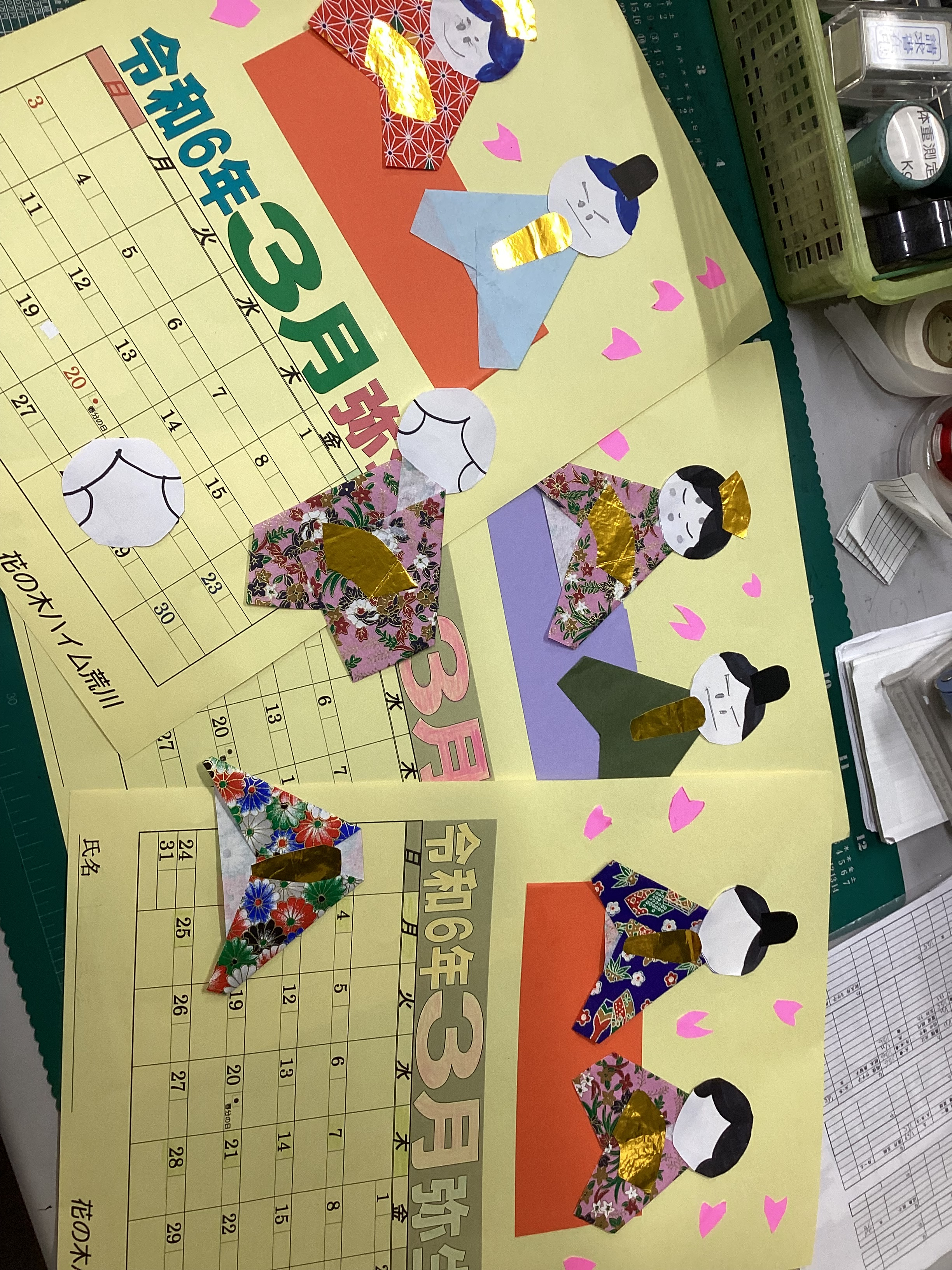 今日は三月のカレンダー、お雛様の製作をご覧いただきます。