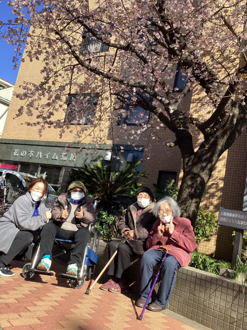 そんな寒さの中ですが、花の木の玄関横の桜、満開です。