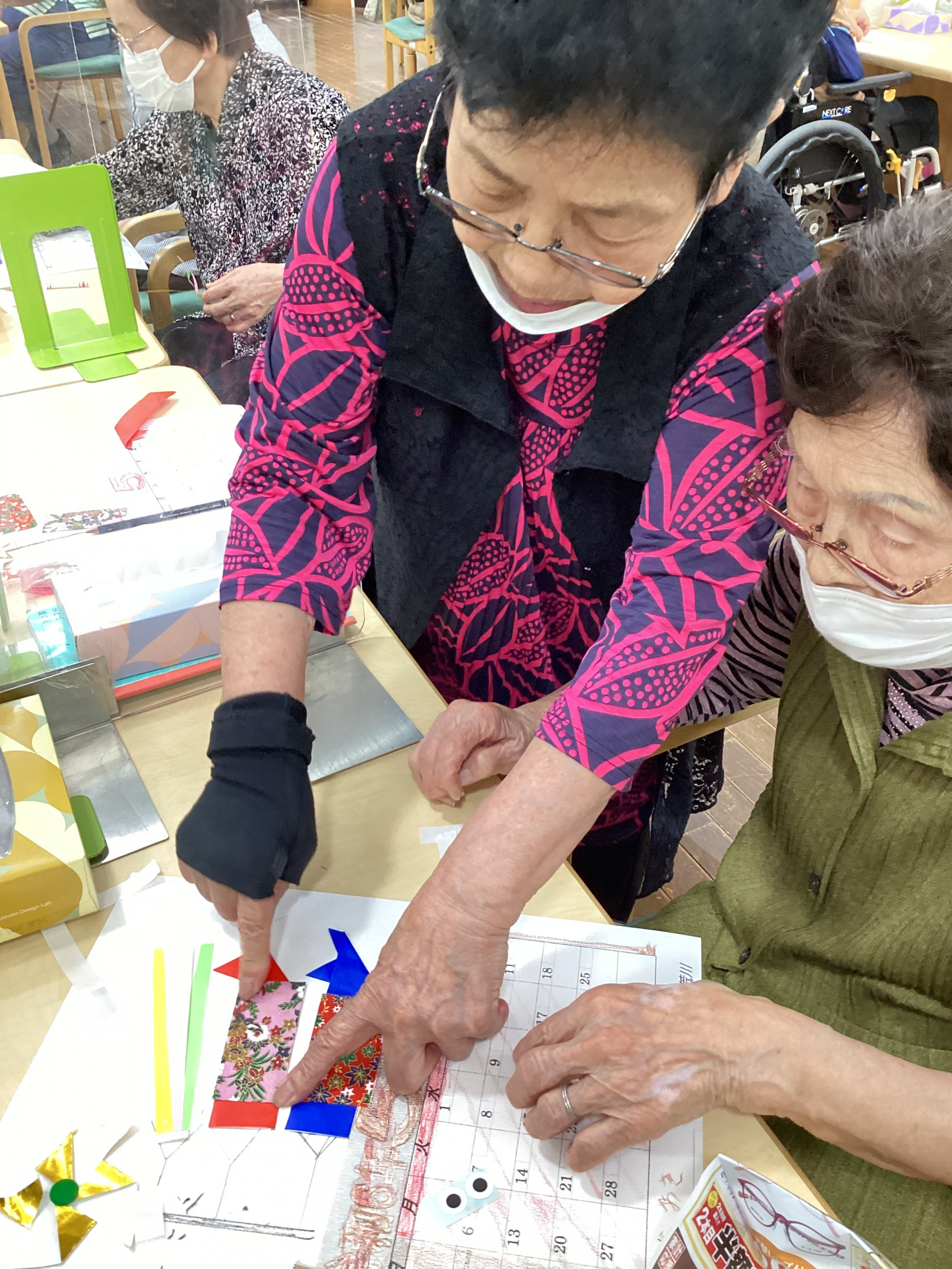 本日の午後、レクの時間に、来月のカレンダーを完成させていただきました。
