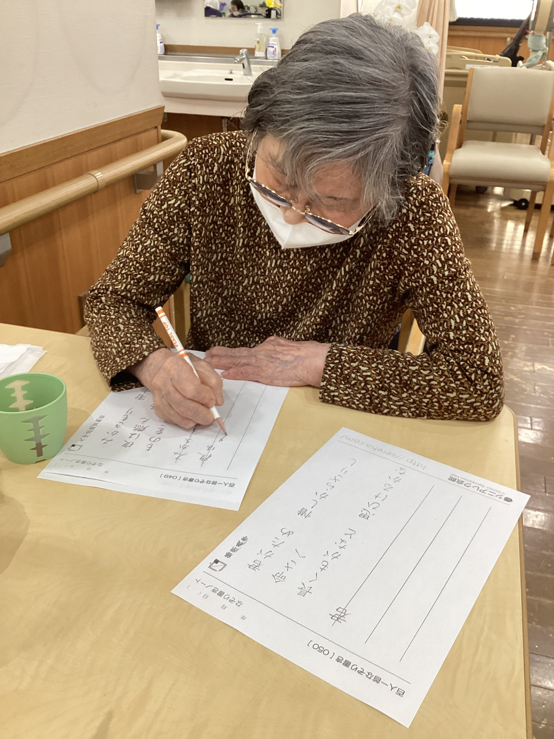 本日はレクリエーションで「硬筆・書道」を行いました。