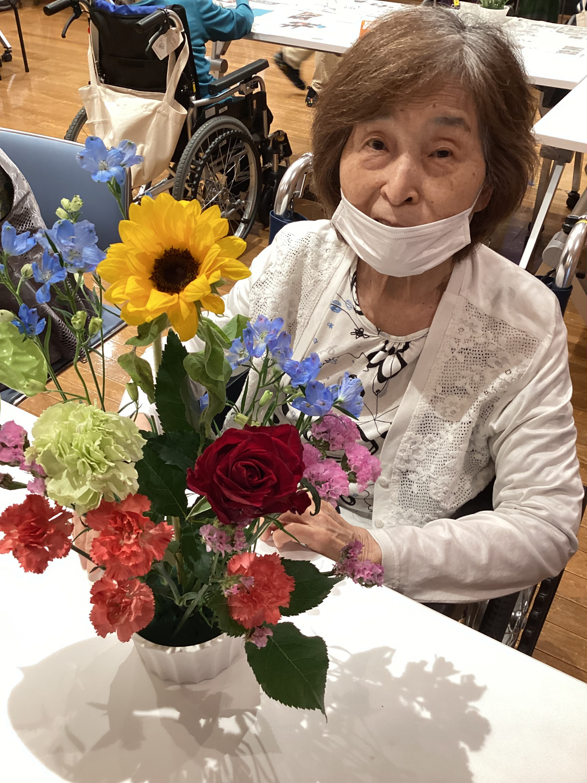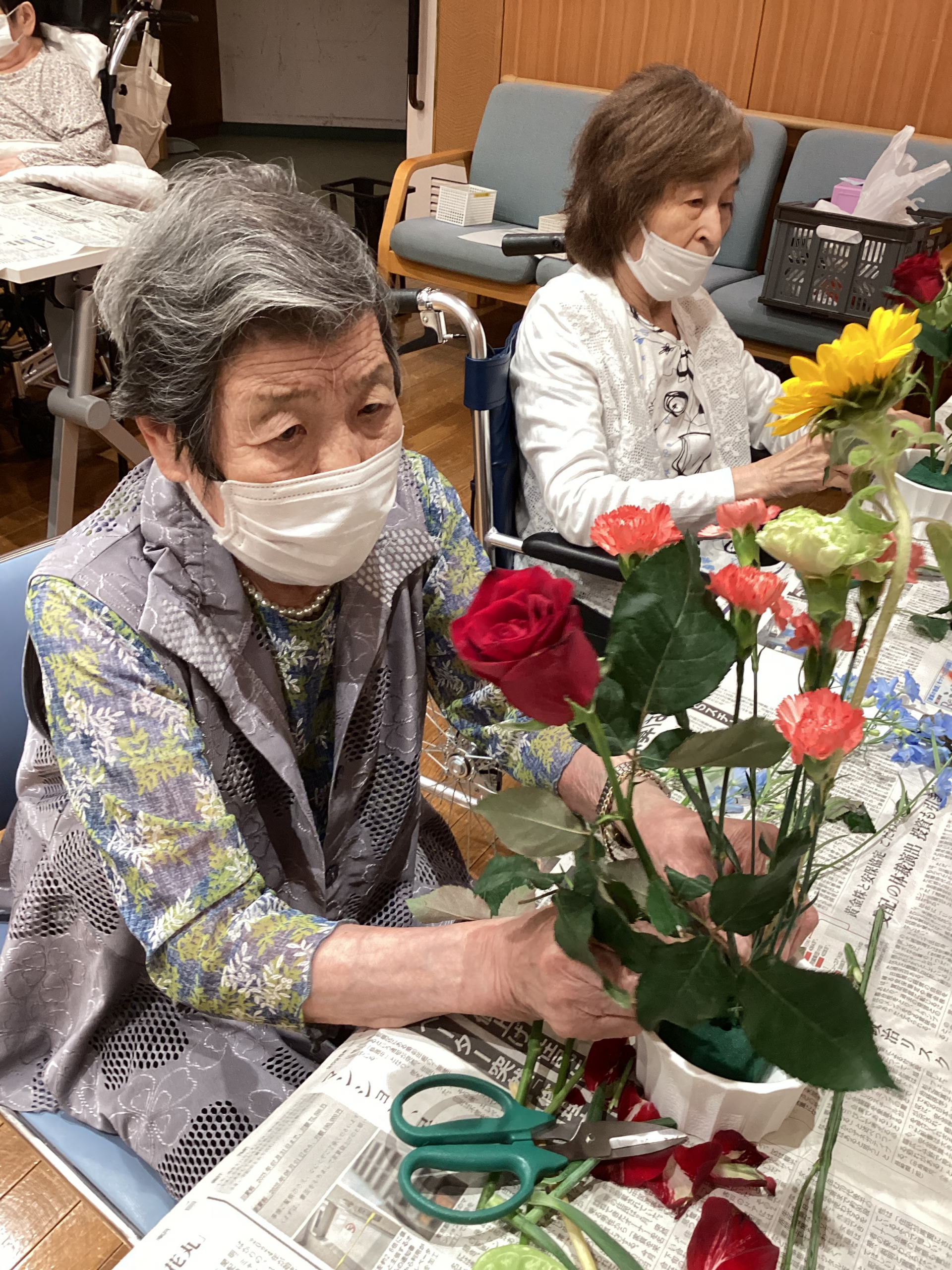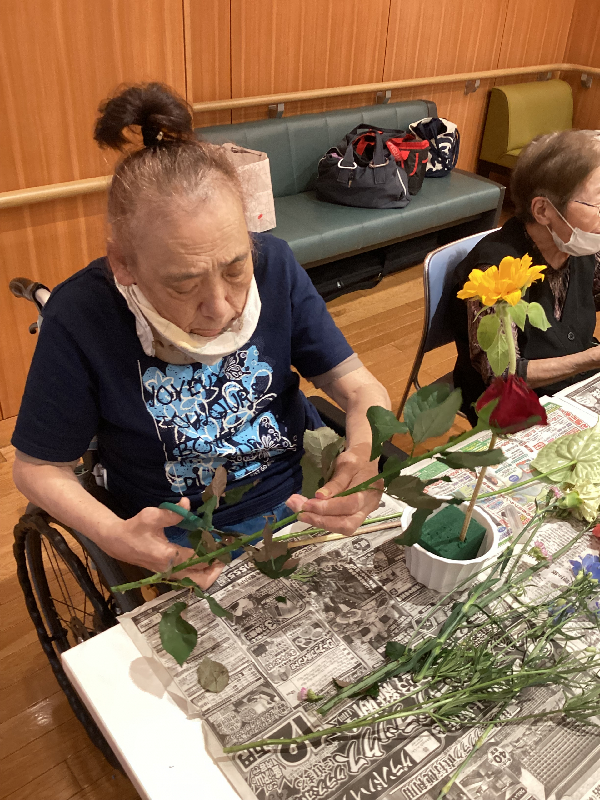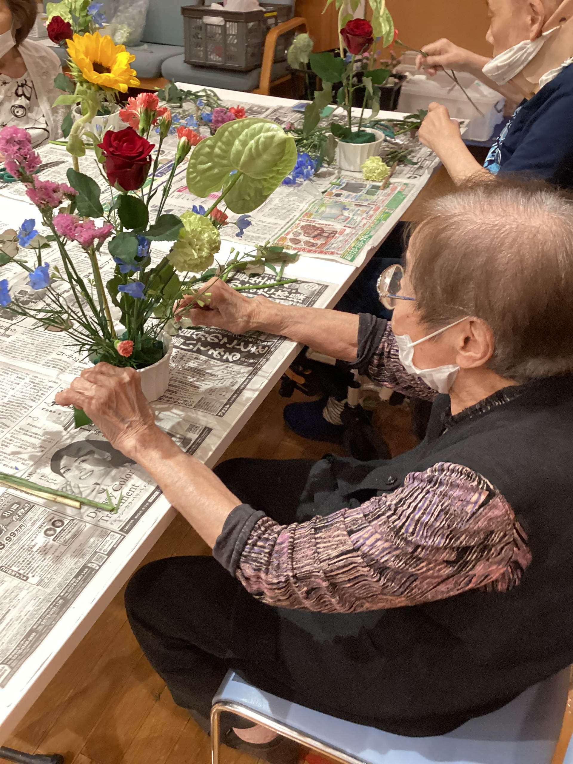 皆さんが迷いなく真剣な表情で、ハサミを使い茎を切って刺す姿にとても驚き、感心しました。