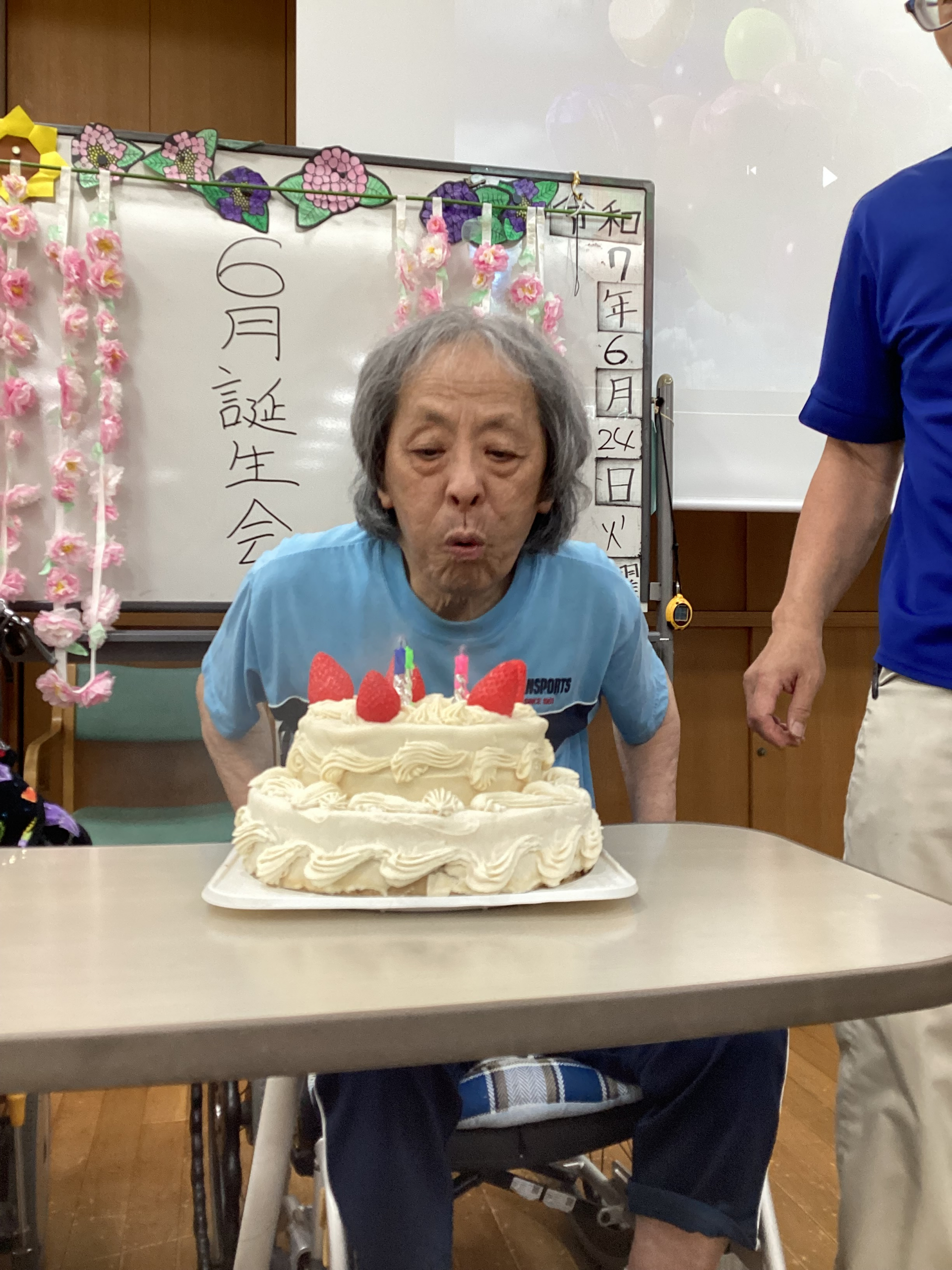 ケーキのろうそく吹きも大成功で、皆さんから多くの拍手がおきました!